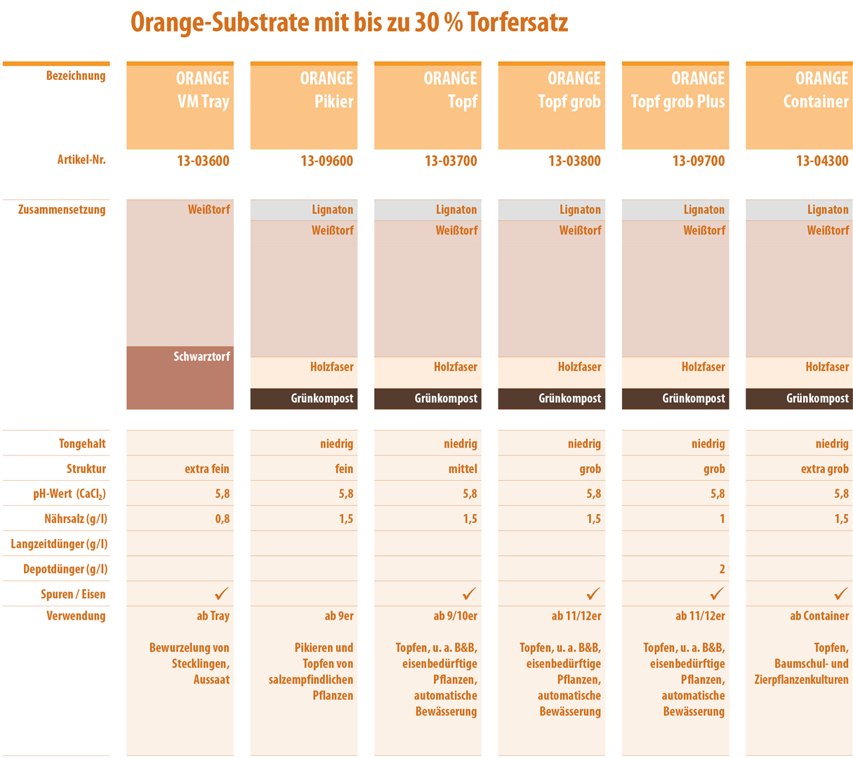 Diese Produktlinie ist torfbasierend, ein Rohstoff macht den wesentlichen Charakter der Mischung aus. Neben traditionellen Torfsubstraten aus deutscher oder baltischer Produktion finden sich hier auch innovative Produkte auf Basis von Holzfasern.